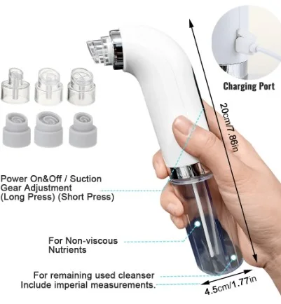 يعمل الجهاز على تحسين مظهر البشرة - تصميم مريح وسهل الاستخدام - استخدام متعدد: يمكن استخدام الجهاز لعلاج مشاكل البشرة المتعددة، مثل الرؤوس السوداء وحب الشباب.